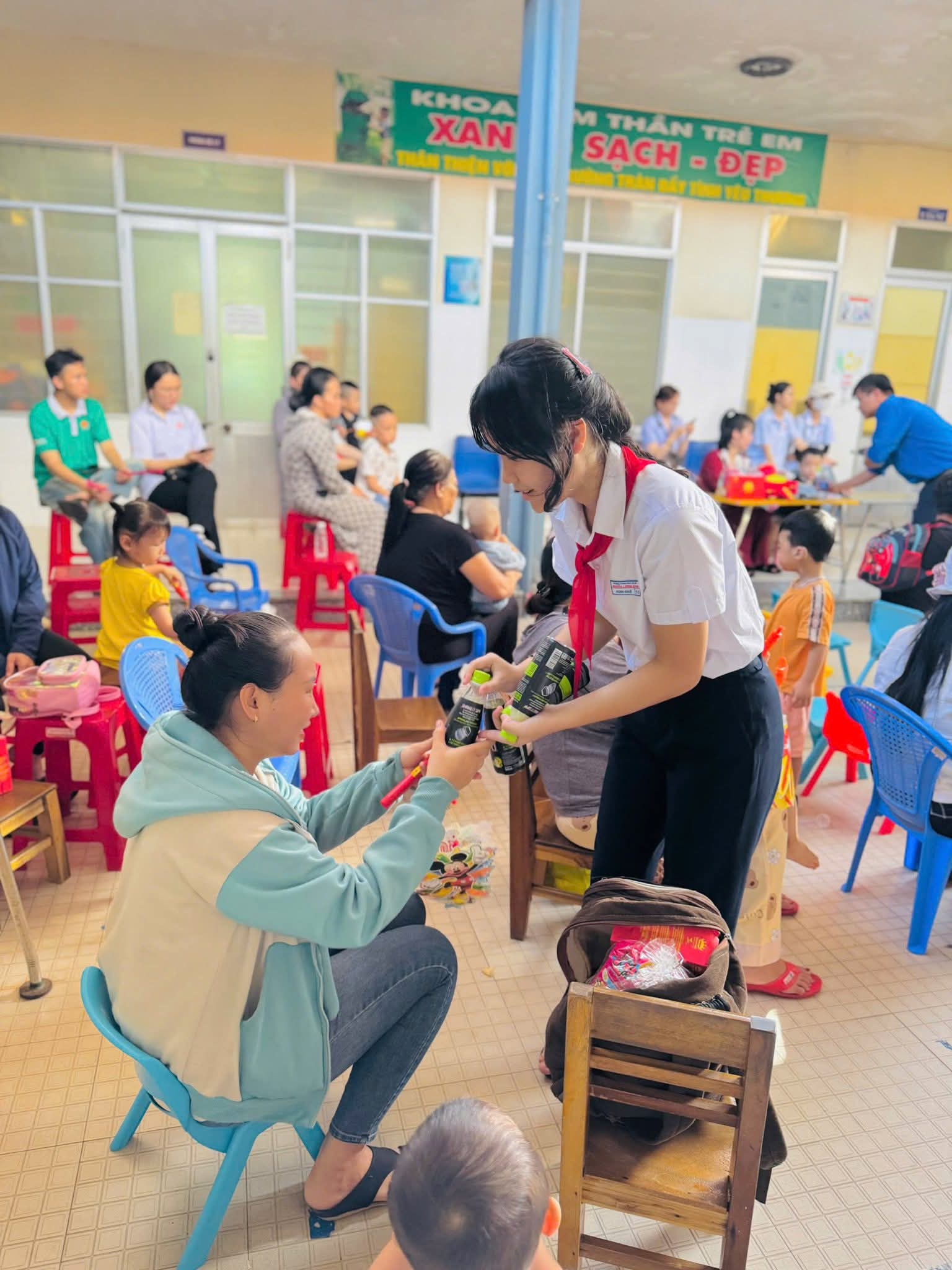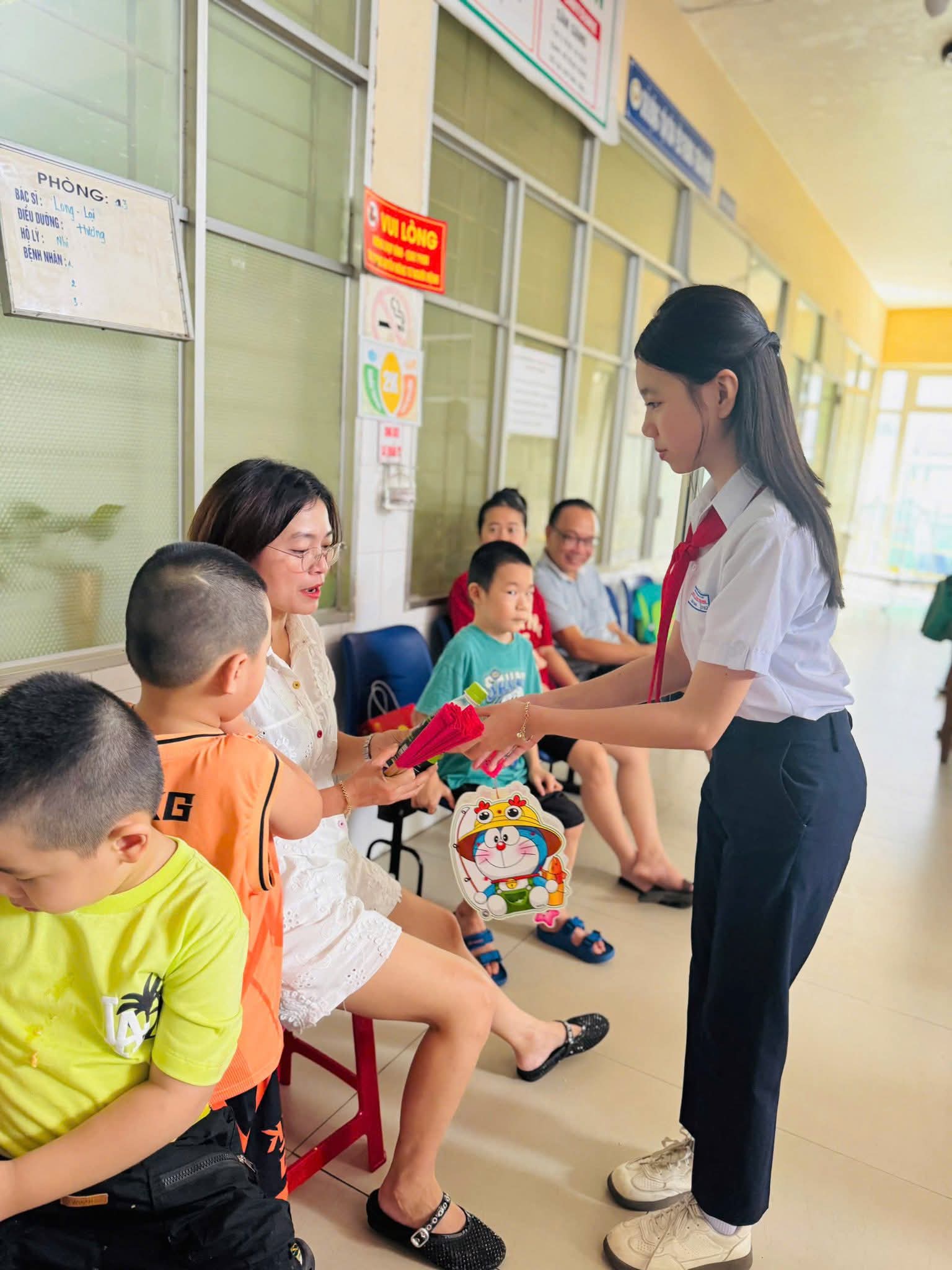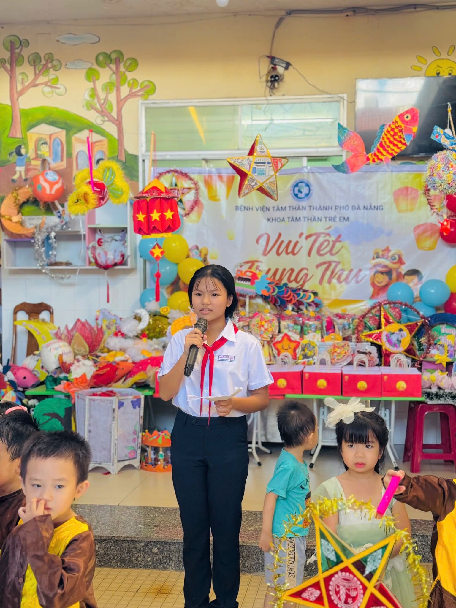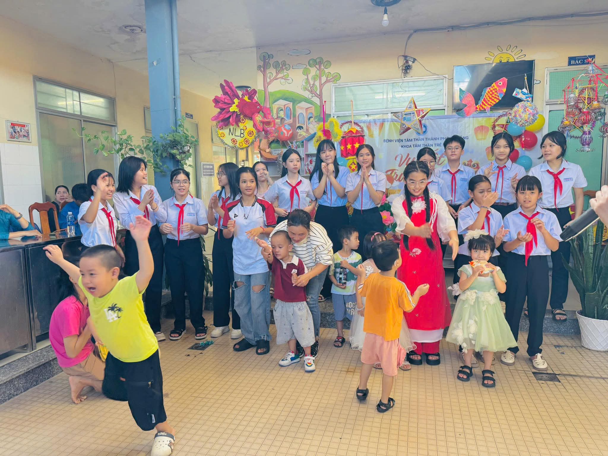 ☘ Đặc biệt, bên cạnh niềm vui trong trường, thầy và trò Trường THCS Nguyễn Lương Bằng còn lan tỏa tinh thần “Trung thu sẻ chia” thông qua chương trình thiện nguyện tại khoa Nhi – Bệnh viện Tâm thần Đà Nẵng. Đại diện nhà trường đã trao tặng những phần quà ý nghĩa, mang đến niềm vui, tiếng cười và sự động viên tinh thần cho các em nhỏ kém may mắn, giúp các em có một mùa trăng ấm áp, đủ đầy tình thương.